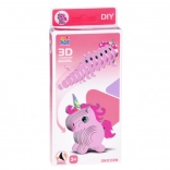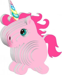 Unicornul roz ca model 3D din carton este alegerea perfectă pentru micii creatori. Este suficient să desprinzi piesele din foi și să urmezi instrucțiunile de pe ambalaj. Figurina finală încântă atât ca jucărie, cât și ca decorațiune adorabilă pentru camera copilului.