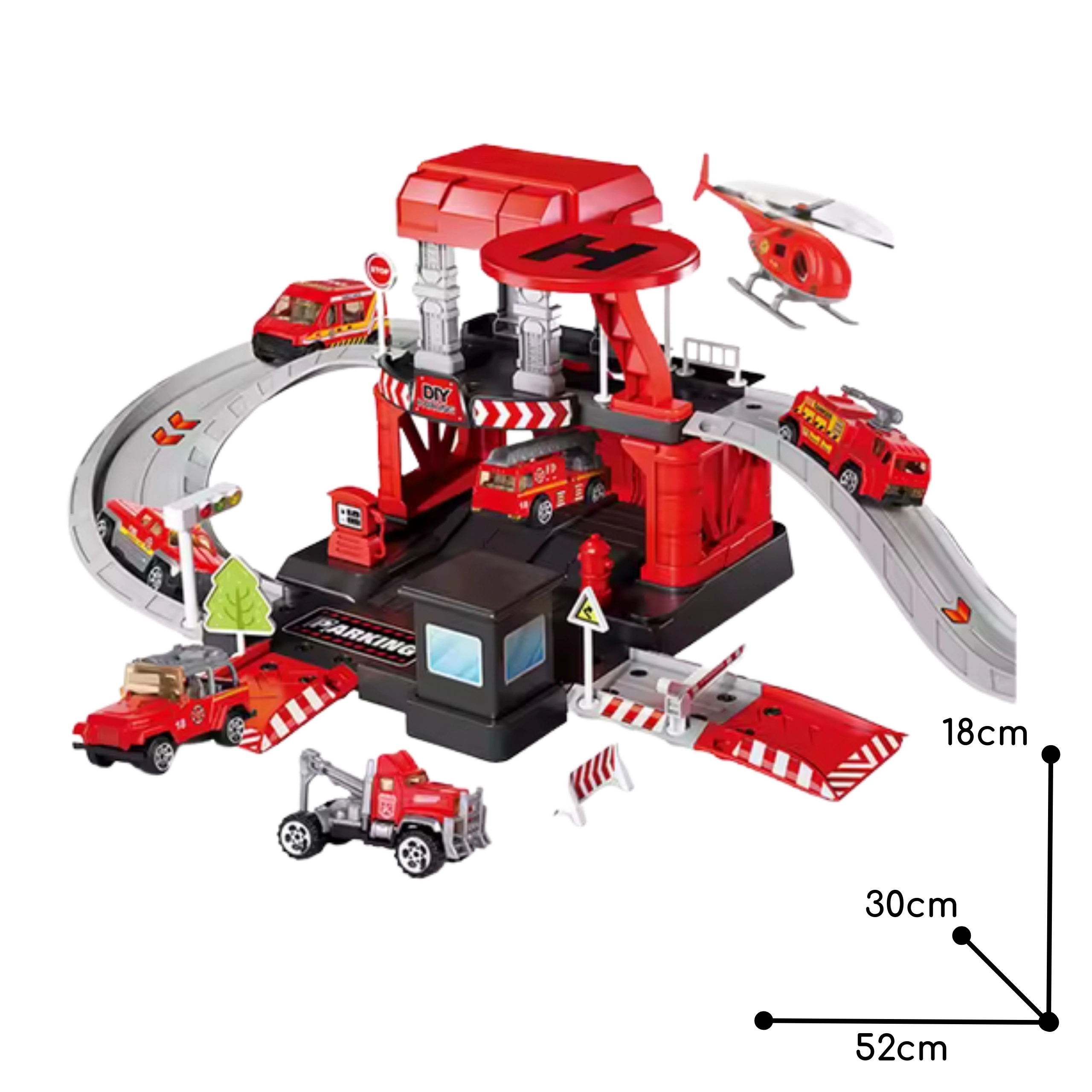 Copiii se vor bucura de 43 de piese, inclusiv semne, bariere, semafoare, stație de benzină și cabina paznicului. Setul susține motricitatea fină, gândirea logică și dezvoltarea imaginației în jocurile de rol ale micilor pompieri.