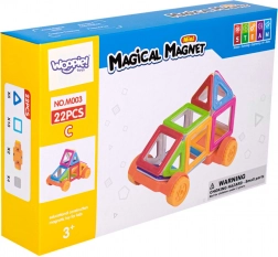 Setul de construcție magnetică WOOPIE oferă copiilor, într-un mod jucăuș, bazele geometriei și magnetismului. Piesele transparente, în culori vii, se conectează lin și permit crearea de căsuțe tridimensionale, turnuri și vehicule mobile. Datorită legăturii magnetice puternice, construcțiile sunt stabile, dar pot fi reconfigurate rapid, stimulând astfel imaginația.
