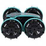 Roțile mari, cu profil pronunțat, oferă tracțiune și stabilitate excelente. Mașina se poate roti în jurul propriei axe și gestionează terenul dificil.