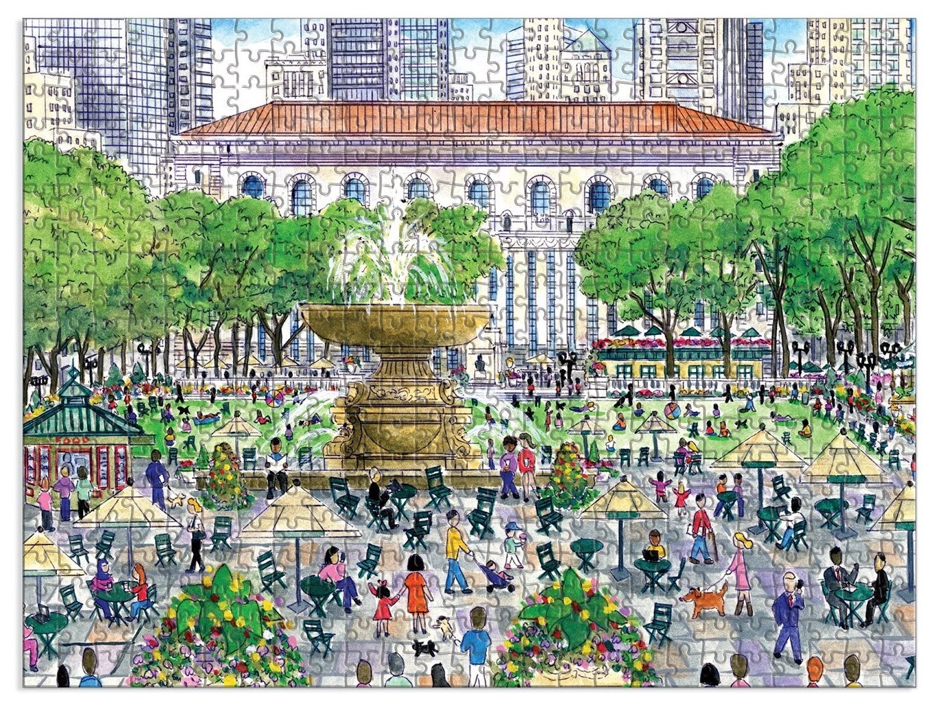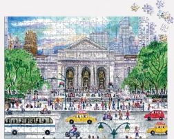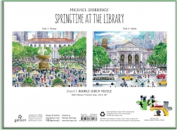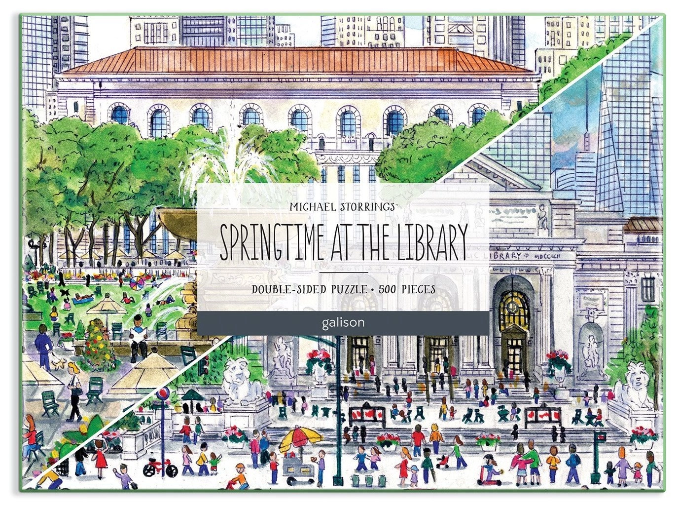 Puzzle-ul reversibil GALISON „Springtime at the Library” oferă o experiență unică: pe o parte găsești o scenă urbană plină de viață cu fântână și parc, pe cealaltă o bibliotecă iconică și împrejurimi animate. Datorită imaginilor pe ambele fețe, obții o porție dublă de asamblare și o rejucabilitate ridicată.