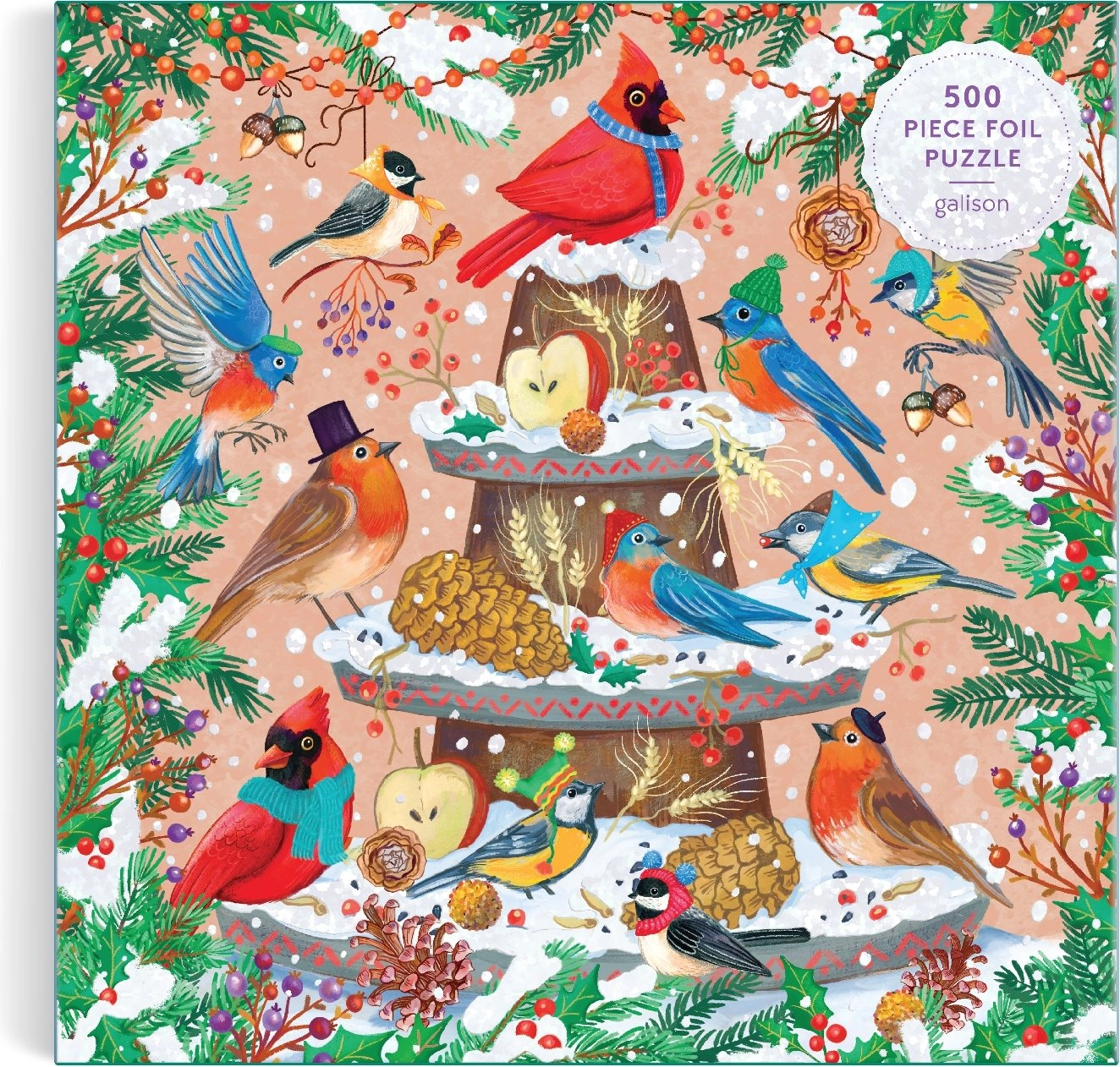 Puzzle-urile de design GALISON cu motiv de păsări de sărbătoare vor încânta toți iubitorii de imagini estetice. Suprafața metalică specială strălucește frumos sub diferite unghiuri ale luminii și oferă imaginii un aspect unic și festiv. Cu 500 de piese, este alegerea ideală pentru seri liniștite sau pentru asamblare împreună cu familia.