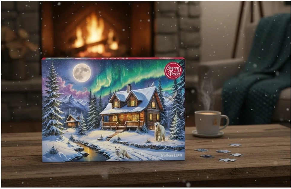 Descoperă farmecul asamblării cu puzzle-ul premium CHERRY PAZZI cu motivul Aurora boreală. Datorită pieselor rezistente, decupajelor precise și suprafeței mate, te vei bucura de o asamblare fluentă, fără reflexii și cu culori intens saturate ale motivului.