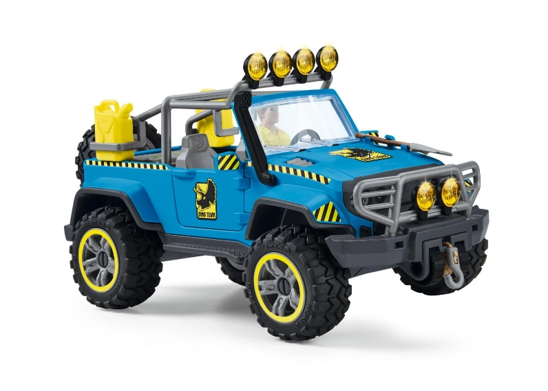Descoperă setul detaliat din seria SCHLEICH DINOSAURS, care oferă nenumărate posibilități de joc. Luis, în vehiculul off-road cu troliu funcțional, pornește în acțiune, folosește momeală de carne și prinde Giganotosaurus în țarcul construit din panouri de gard. Dacă vehiculul rămâne împotmolit, cu ajutorul trusei de scule schimbă ușor roata sau se tractează înapoi pe traseu.