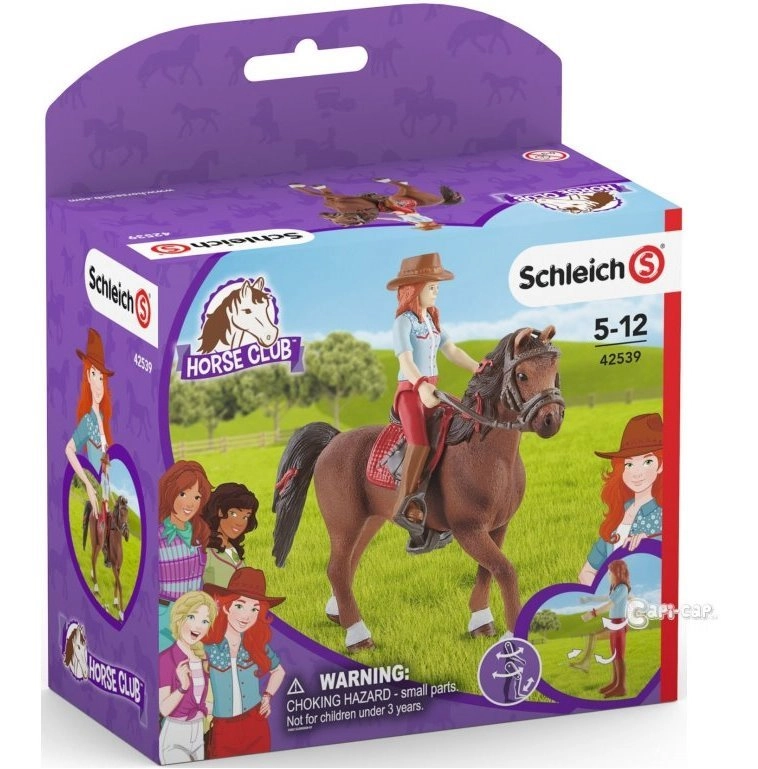 Setul Hannah & Cayenne de la SCHLEICH Horse Club aduce experiențe de echitație realiste. Figurina complet articulată are articulații pentru a sta jos, a sta în picioare și a ține frâiele, simulând cu ușurință călăria western. Calul are o șa, un căpăstru și împletituri în coamă realizate în detaliu pentru un aspect și mai fidel.