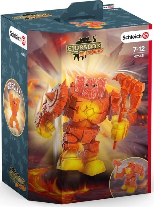Robotul de lavă super-puternic din colecția SCHLEICH Eldrador Mini Creatures este făcut pentru acțiune. Datorită brațelor mobile și securilor de lavă interschimbabile poate „sparge” pietre înghețate, stăpâni curenți de lavă și înfrunta inamicii din toate colțurile Eldradorului. În centrul de comandă poate sta mini-creatura – lordul lavei, disponibilă exclusiv în acest set.
