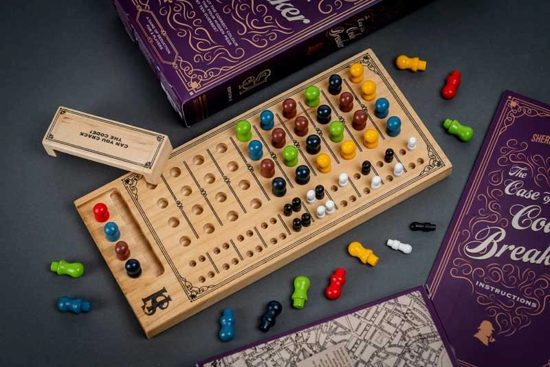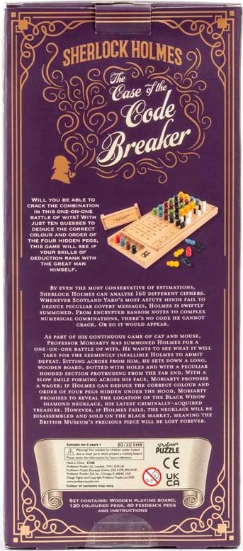 Clasicul puzzle de tip Mastermind, într-o versiune elegantă din lemn, aduce confruntări istețe unu la unu. Un jucător alege în secret combinația, iar celălalt încearcă să o descopere în cel mult zece încercări folosind pini de evaluare albi și negri. Combinați, deduceți și depășiți adversarul întocmai ca SHERLOCK HOLMES pe rivalul său.