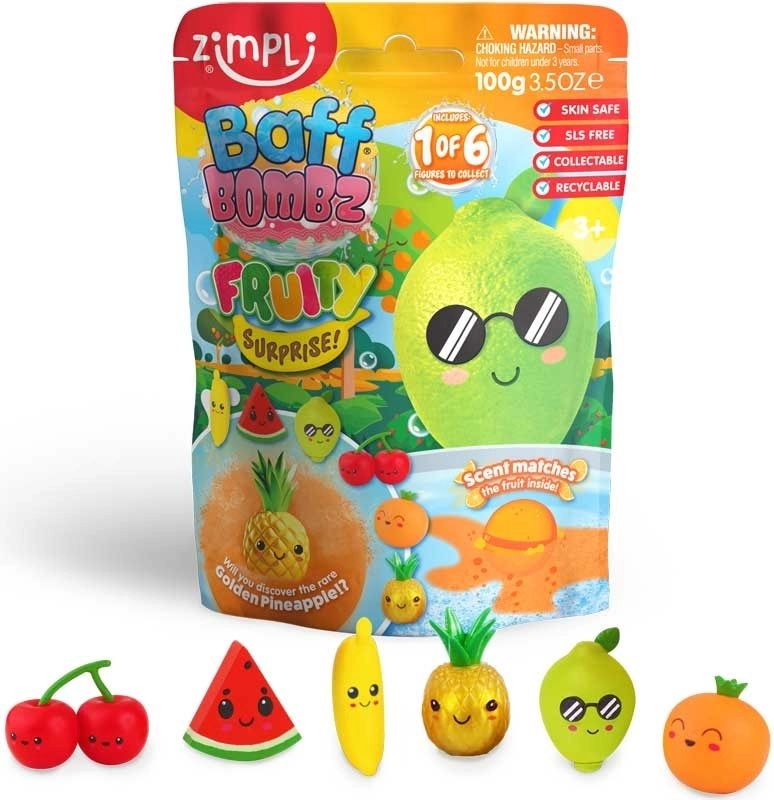 Oferă-le copiilor o baie distractivă și parfumată cu bomba efervescentă Zimpli Kids. După ce este aruncată în apă, bomba se dizolvă, colorează apa, miroase plăcut a fructe și dezvăluie în interior o surpriză sub forma unei jucării. Formula testată dermatologic este blândă cu pielea, iar coloranții sunt siguri și ecologici.