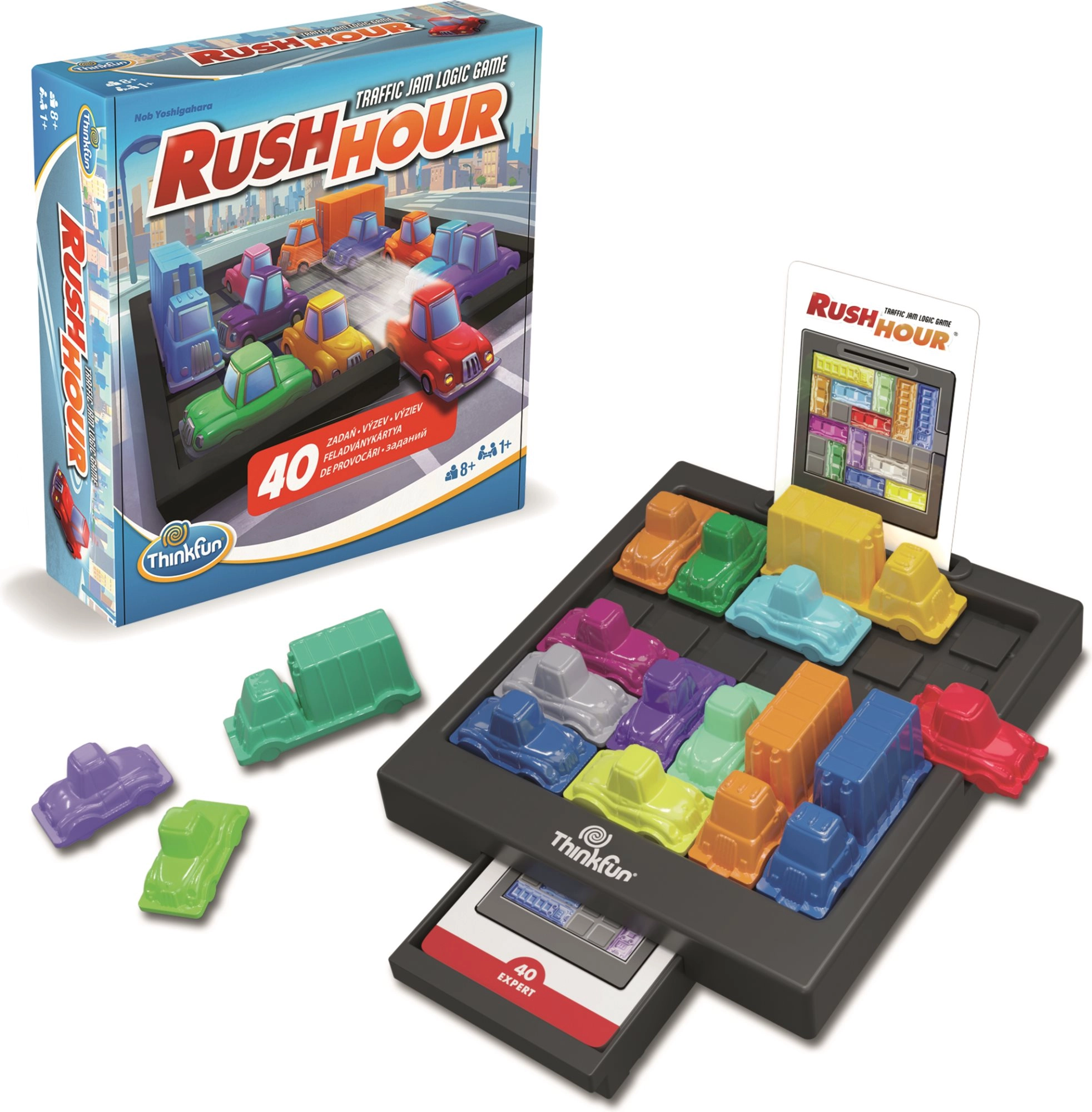 Jocul logic legendar ThinkFun Rush Hour îți va testa planificarea și răbdarea. Scopul tău este să deblochezi ambuteiajul și să conduci mașina roșie spre ieșire mutând celelalte vehicule. Un antrenament excelent pentru creier pentru copii și adulți, ideal atât în călătorii, cât și acasă.