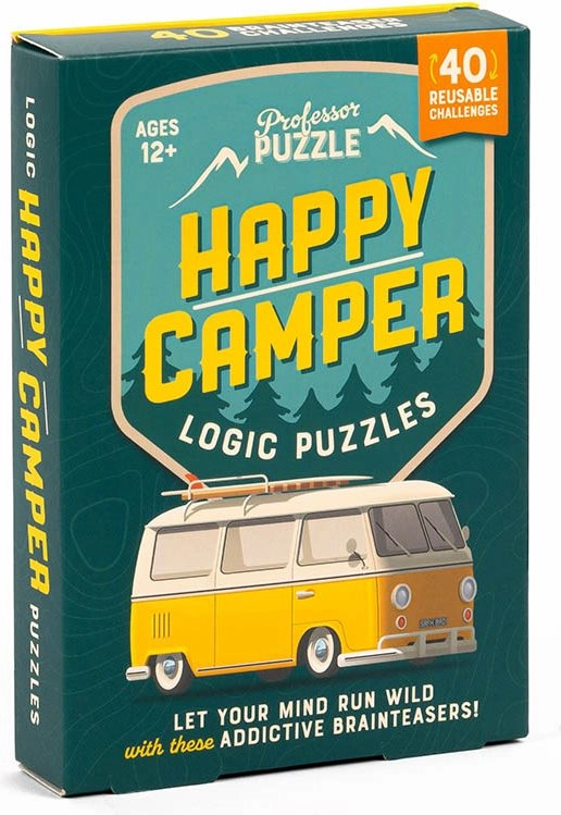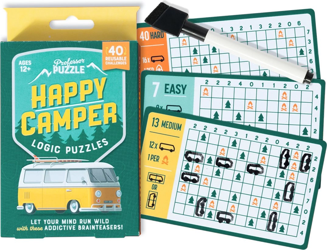 Porniți într-o aventură cu setul Happy Camper Logic Puzzles de la PROFESSOR PUZZLE. Cardurile practice, reutilizabile, oferă 40 de provocări inteligente pe diferite niveluri de dificultate – de la ușor la dificil. Datorită markerului pentru ștergere la uscat, puteți scrie, rezolva direct pe carduri și apoi șterge ușor pentru a reîncepe.