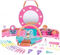Platforma centrală rotativă și părțile pliabile transformă salonul într-un mini-podium pentru a prezenta noile coafuri și ținute ale păpușii tale L.O.L.
