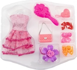 Acest set universal pentru păpuși oferă o ținută completă pentru orice ocazie. Copiii pot combina rochiile, pantofii și accesoriile pentru păr, creând nenumărate stiluri. Mixul de variante asigură surpriză și bucurie la fiecare pachet.