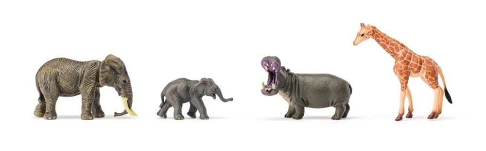 De la pui la animale adulte – combinația de elefanți, girafe, zebre, antilope sau hipopotam stimulează scenarii creative și ore îndelungate de joacă.