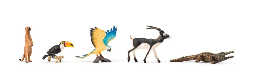 Setul conține figurine atent modelate și pictate – de la mărețul elefant și girafă până la leu, zebră și crocodil. Ideal atât pentru joacă, cât și pentru învățarea denumirilor animalelor.