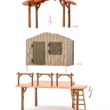 - Stație safari completă – căsuță pe piloni, balustradă, scară, țarcuri, cărucior și unelte practice.