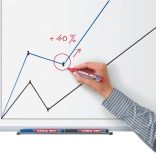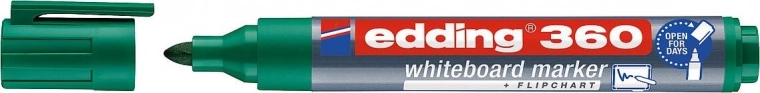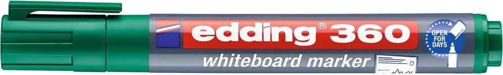 Marker verde fiabil pentru table albe, cu vârf rotund și ștergere la uscat de pe suprafețe neporoase. Oferă compatibilitate largă cu diverse tipuri de table, cerneală pigmentară cu miros slab fără butilacetat și lățime a traseului 1,5–3 mm. Datorită cernelii de tip cap-off, poate rămâne o perioadă fără capac fără să se usuce.