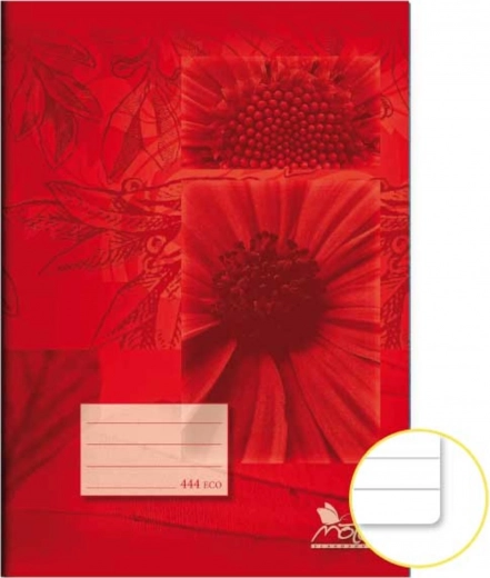 Caiet școlar stilat cu motiv Flori roșii, format A4, cu liniatură de 8 mm și margine. Conține 40 de file din hârtie reciclată de calitate – ideal pentru școală, birou și notițe acasă.