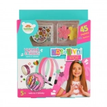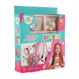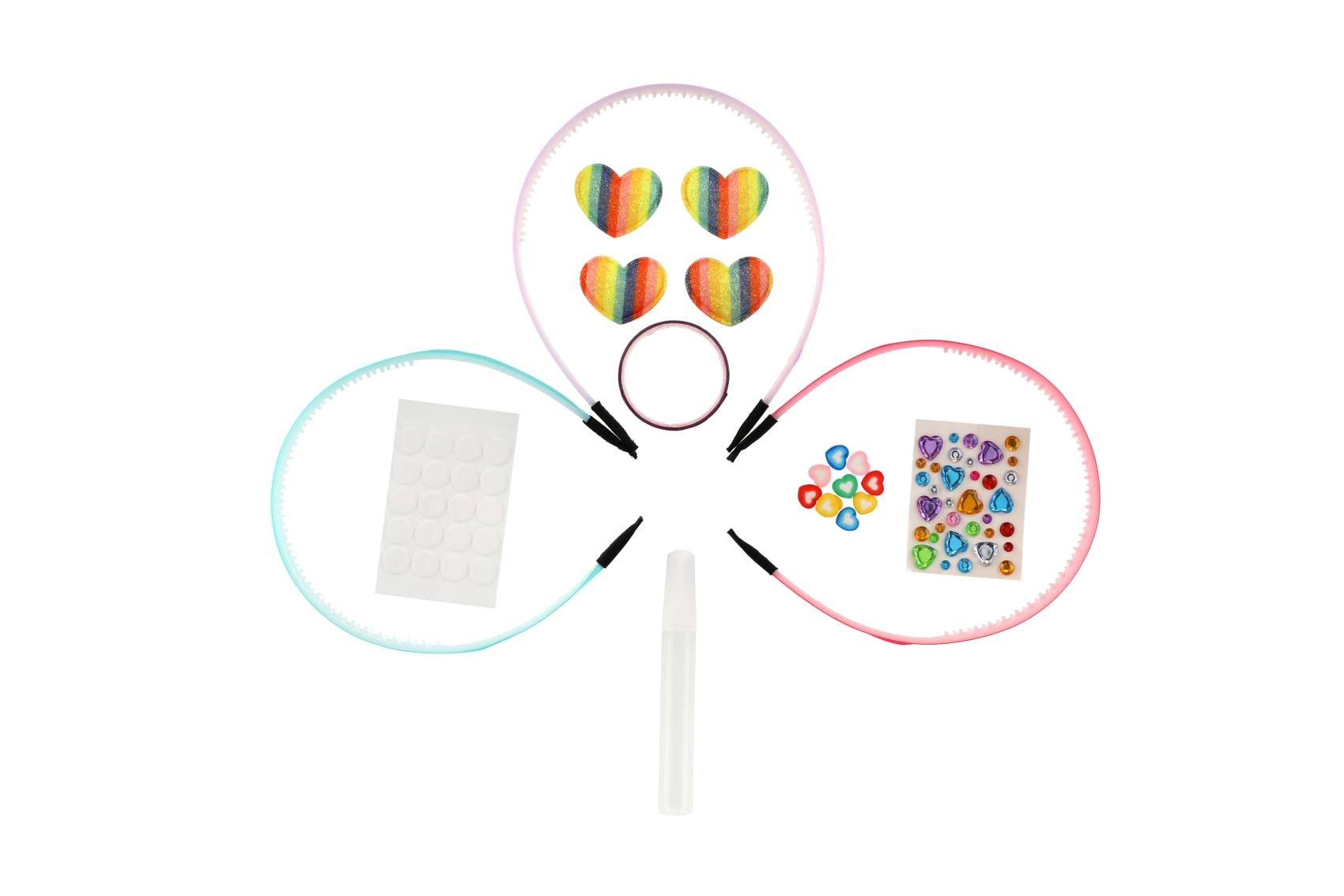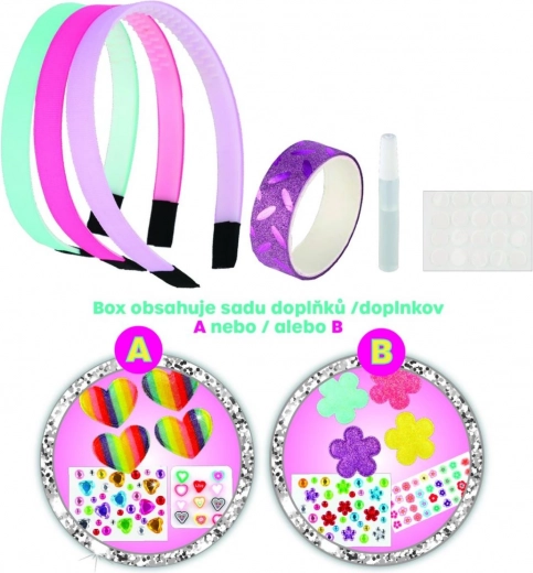 Creați bentite originale exact pe gustul vostru. Setul include trei bentite de bază și o gamă variată de decorațiuni, datorită cărora iau naștere combinații unice – de la colorate și jucăușe până la discrete și delicate. Pașii simpli pot fi urmați și de copiii mai mici, care își vor exersa răbdarea și motricitatea fină în timp ce creează.
