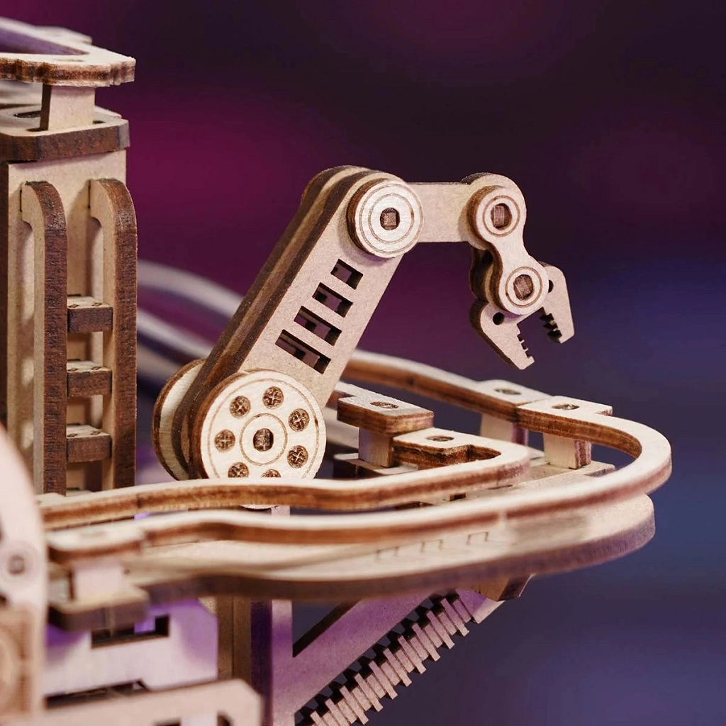 Modelul combină lemn, metal și plastic pentru o funcționare mecanică fiabilă și o estetică dinamică. Setul este ideal pentru momente petrecute împreună cu familia și prietenii, dezvoltând motricitatea fină, gândirea logică și răbdarea.