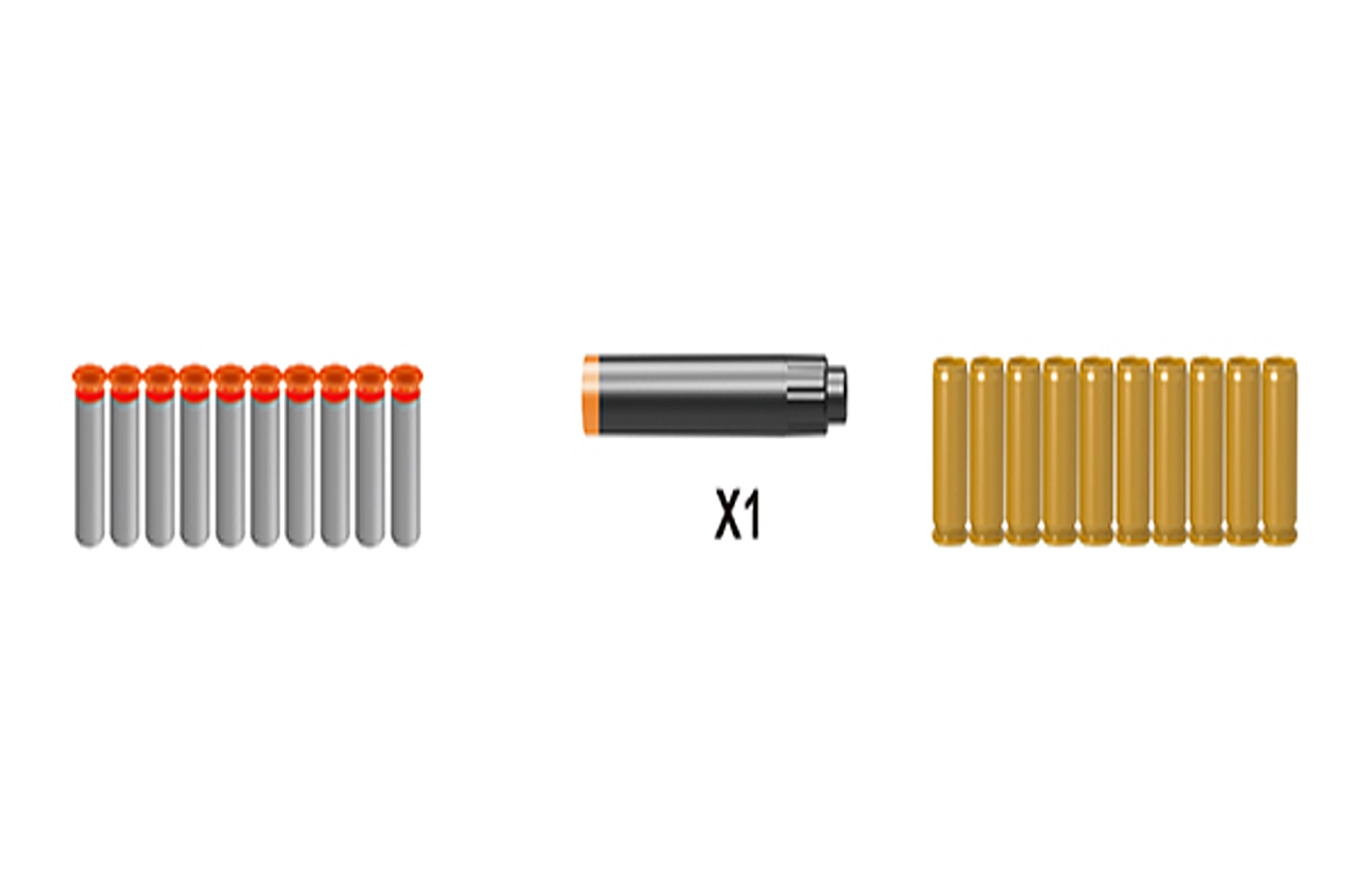 - Echipare bogată: 10 cartușe și 10 gloanțe din spumă