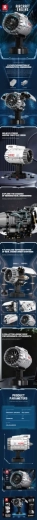 Modelul este echipat cu acumulator de 7,4 V și cutie pentru baterii pentru a pune motorul în mișcare. Ideal ca set educațional pentru copii mai mari și adulți care doresc să înțeleagă principiile de funcționare ale unui motor cu reacție și, în același timp, să se bucure de asamblarea distractivă.
