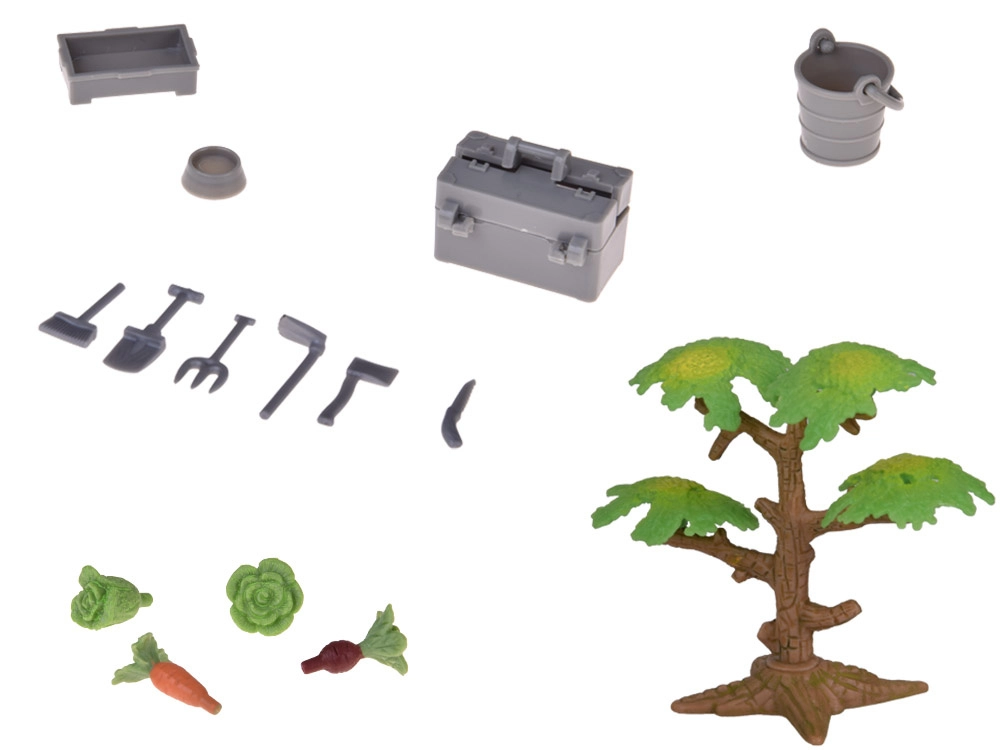 - Echipare bogată: animale (vaci, porci, cai, oi, câini), fermieri, unelte, garduri, copac, moară de vânt și altele.