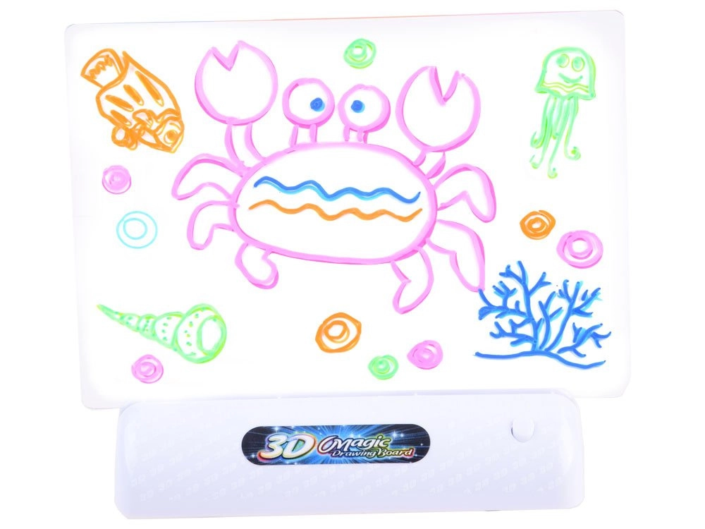 Tăblița magică de desen 3D cu iluminare LED transformă creațiile copiilor în imagini neon cu efect 3D. Datorită markerelor fluorescente, ochelărilor 3D și panoului transparent reutilizabil, este o alegere excelentă pentru dezvoltarea creativității, imaginației și motricității fine la copiii de la 3 ani în sus.