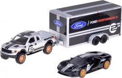 Set de colecție stilat de la Maisto la scara 1:64, care combină robustul FORD Raptor cu o remorcă detașabilă și iconicul automobil de curse FORD GT Heritage. Modelele au caroserie metalică, roți din cauciuc și imprimeu detaliat. Ideal atât pentru colecție, cât și pentru joacă – remorca are rampă funcțională, iar Raptorul dispune de dispozitiv de tractare pentru un transport realist. Construcție metalică, roți din cauciuc, remorcă funcțională cu rampă și execuție licențiată detaliată – pe placul oricărui pasionat de mașini.