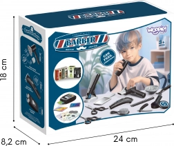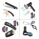 Setul conține tot ce este necesar pentru îngrijire completă de coafor și barber: de la uscător și placă de păr la mașini de tuns, foarfece, piepteni și terminal de plată cu bani. Copiii pot exersa servirea clienților, plata cu cardul și numerar și învață bazele comunicării și colaborării.