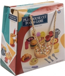 - Pizza, tăietor de pizza, cuțit, 2× hot dog, hamburger (chiflă, salată, chiftea), cartofi prăjiți, ketchup, pahar cu pai, ceainic, 2× ceașcă cu farfuriuță, deserturi (formă pentru prăjitură, donut, gogoașă, 3× biscuiți), tacâmuri (lingură, cuțit, furculiță), veselă, instrucțiuni