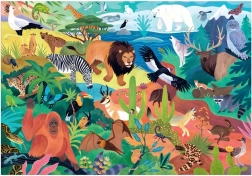 Scufundă-te în lumea animalelor – de la lei maiestuoși până la canguri jucăuși. Puzzle-ul asamblat, cu dimensiunile 58 × 41 cm, le aduce copiilor bucuria descoperirii și, în același timp, susține concentrarea, răbdarea și imaginația spațială. Cutia practică, cu imaginea modelului finalizat, este ideală pentru depozitarea în siguranță a tuturor pieselor.