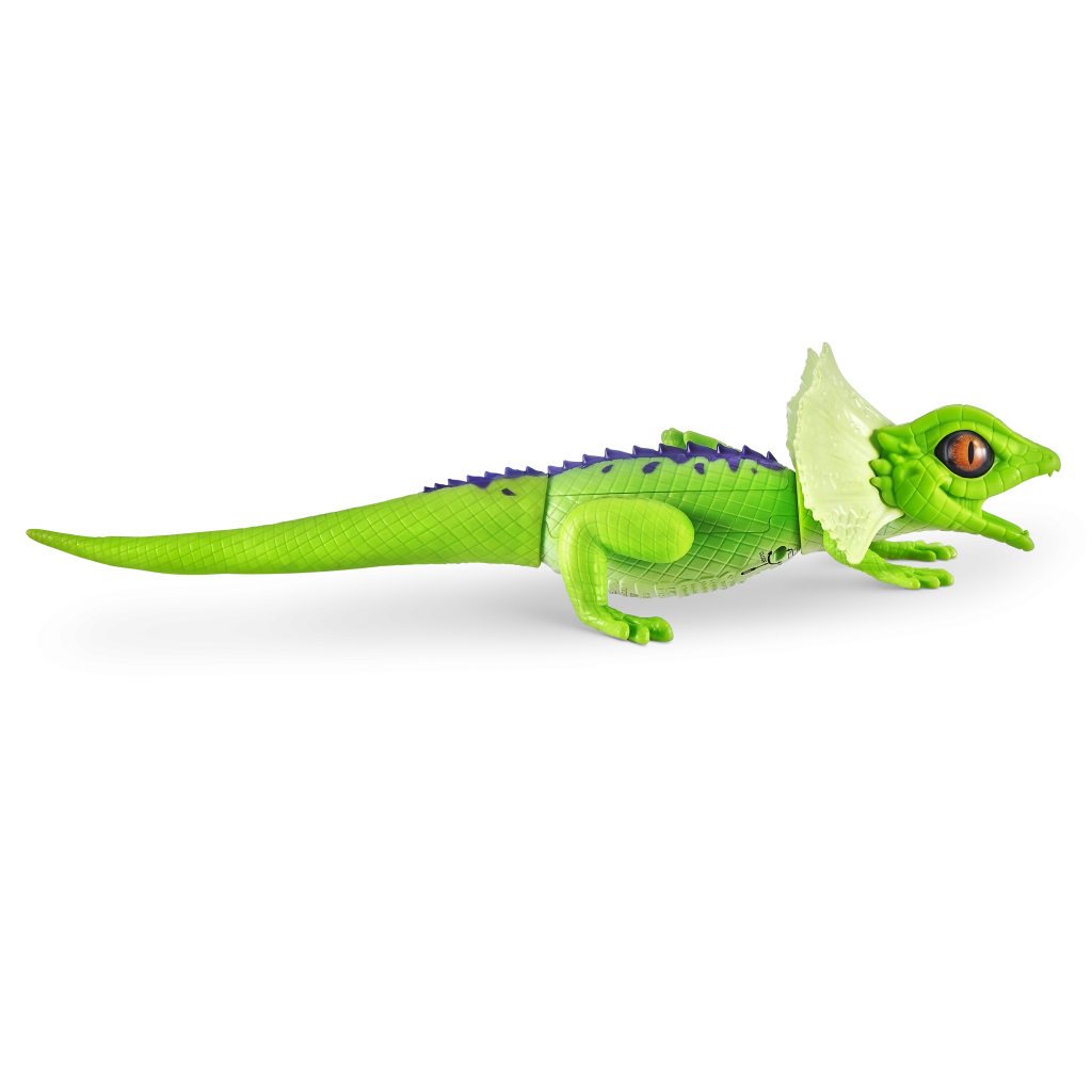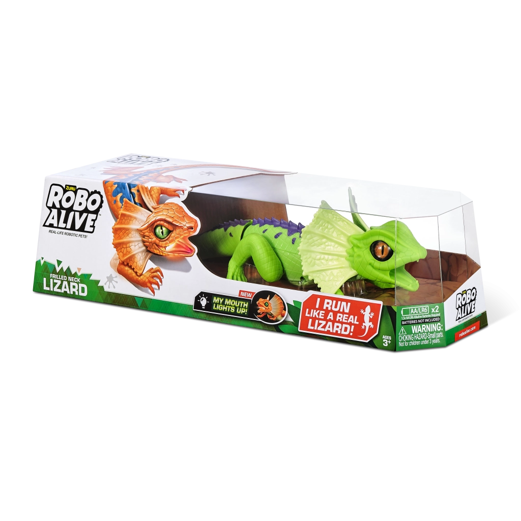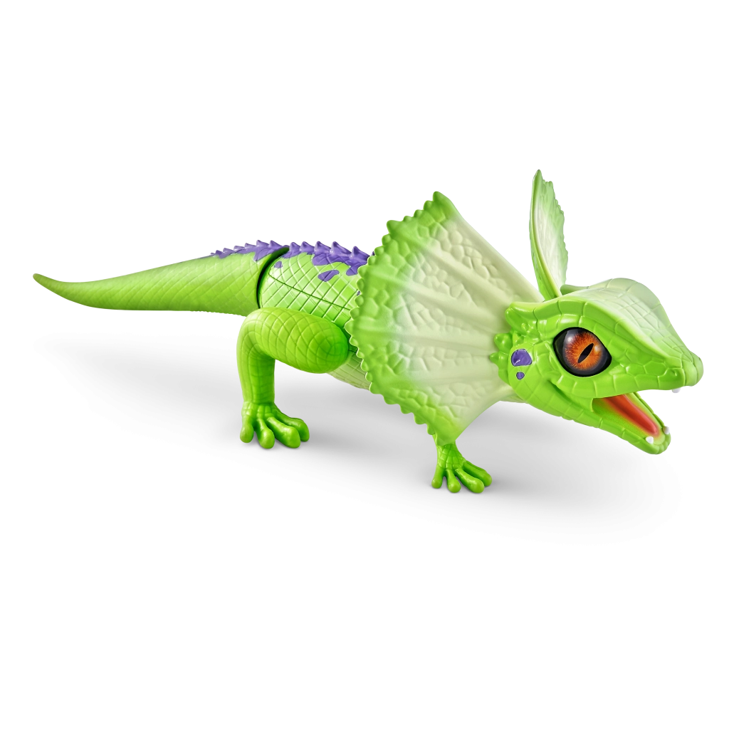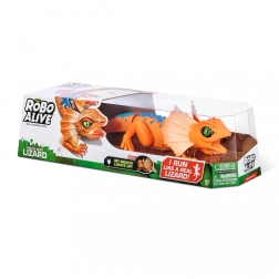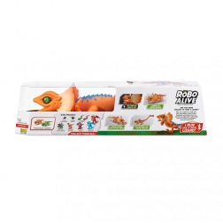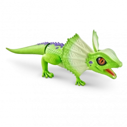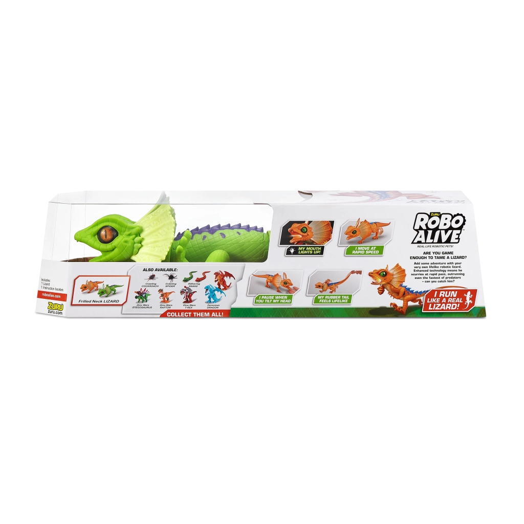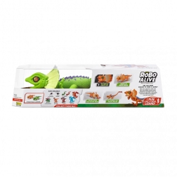 Șopârla robotică ROBO ALIVE aduce copiilor un joc plin de acțiune și mișcare. Datorită antrenării motorizate și construcției bine gândite, reușește alergare rapidă, rotire lină a capului și un pas stabil. Textura realistă a solzilor, frill-ul (gulerul cervical) și culorile intense oferă jucăriei un aspect autentic.