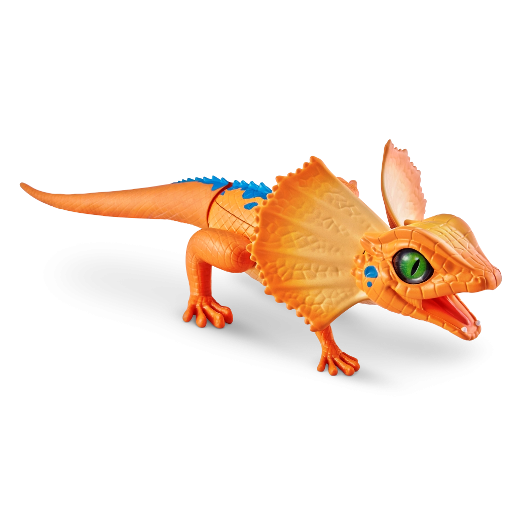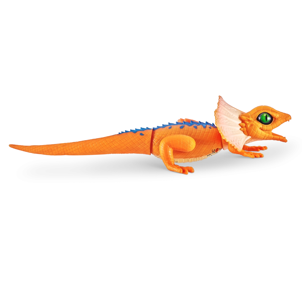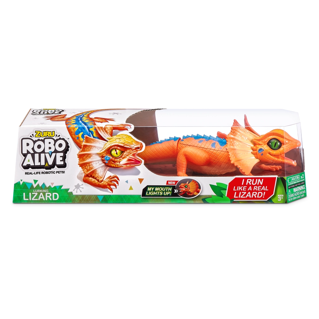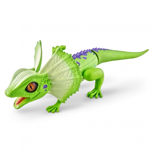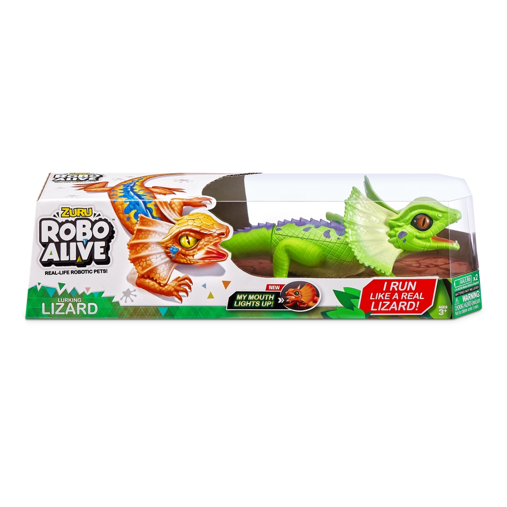 Șopârla robotică ROBO ALIVE aduce copiilor un joc plin de acțiune și mișcare. Datorită antrenării motorizate și construcției bine gândite, reușește alergare rapidă, rotire lină a capului și un pas stabil. Textura realistă a solzilor, frill-ul (gulerul cervical) și culorile intense oferă jucăriei un aspect autentic.