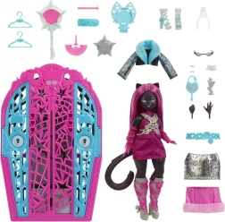 Devino un detectiv înfricoșător și dezleagă misterul Hauntlywood! După ce descui dulapul, vei găsi o păpușă MONSTER HIGH articulată și o mulțime de accesorii pentru combinații de modă nesfârșite. Copiilor le va plăcea căutarea interactivă a indiciilor cu ajutorul cheii-lupă „magice” și recompensa a peste 19 accesorii tematice.