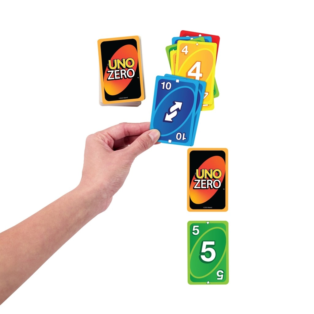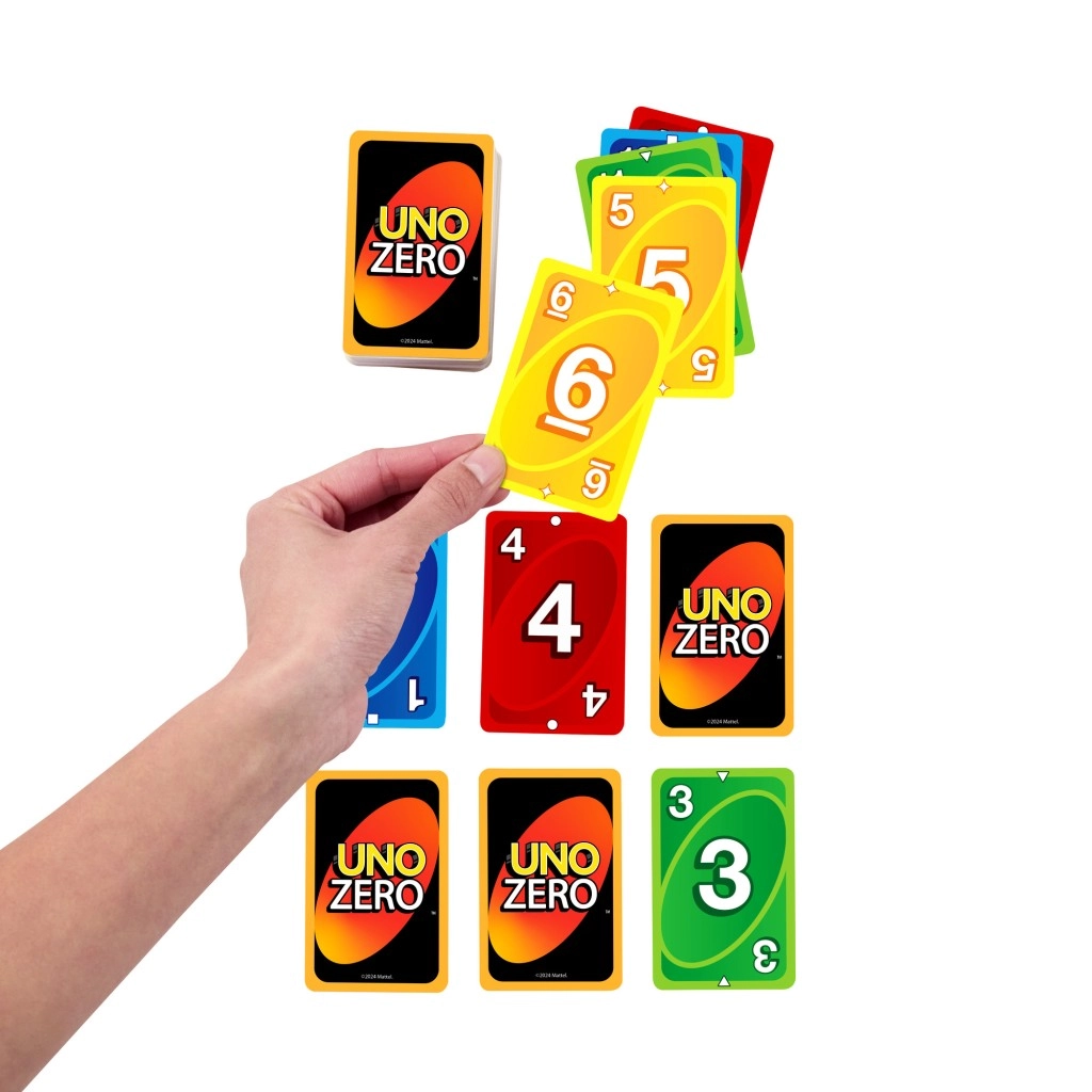 Descoperă jocul de cărți UNO Zero, distractiv și vioi, care aduce elemente strategice noi, ritm de joc rapid și reguli simple pentru toată familia. Schimbă cărțile în grilă după culoare sau număr, reduce scorul și folosește cărțile de acțiune speciale pentru a întoarce cursul jocului în favoarea ta.