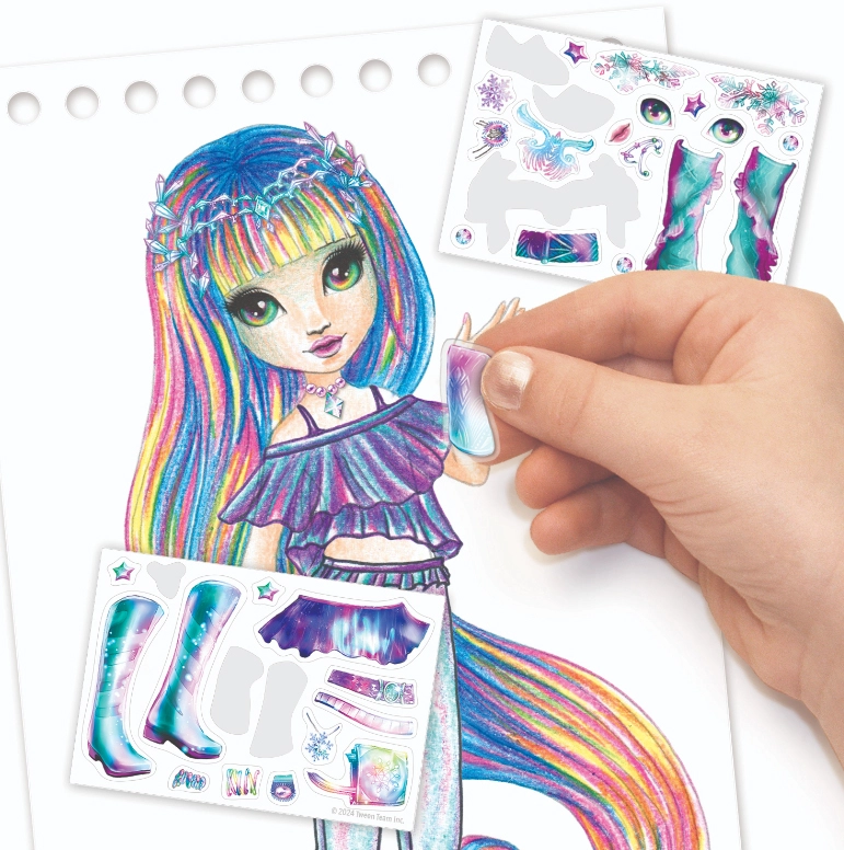 Conține 2 pagini de șabloane (28 de piese), 10 creioane colorate și 6 coli de autocolante. Proiectează, colorează și definitivează stilurile pas cu pas.