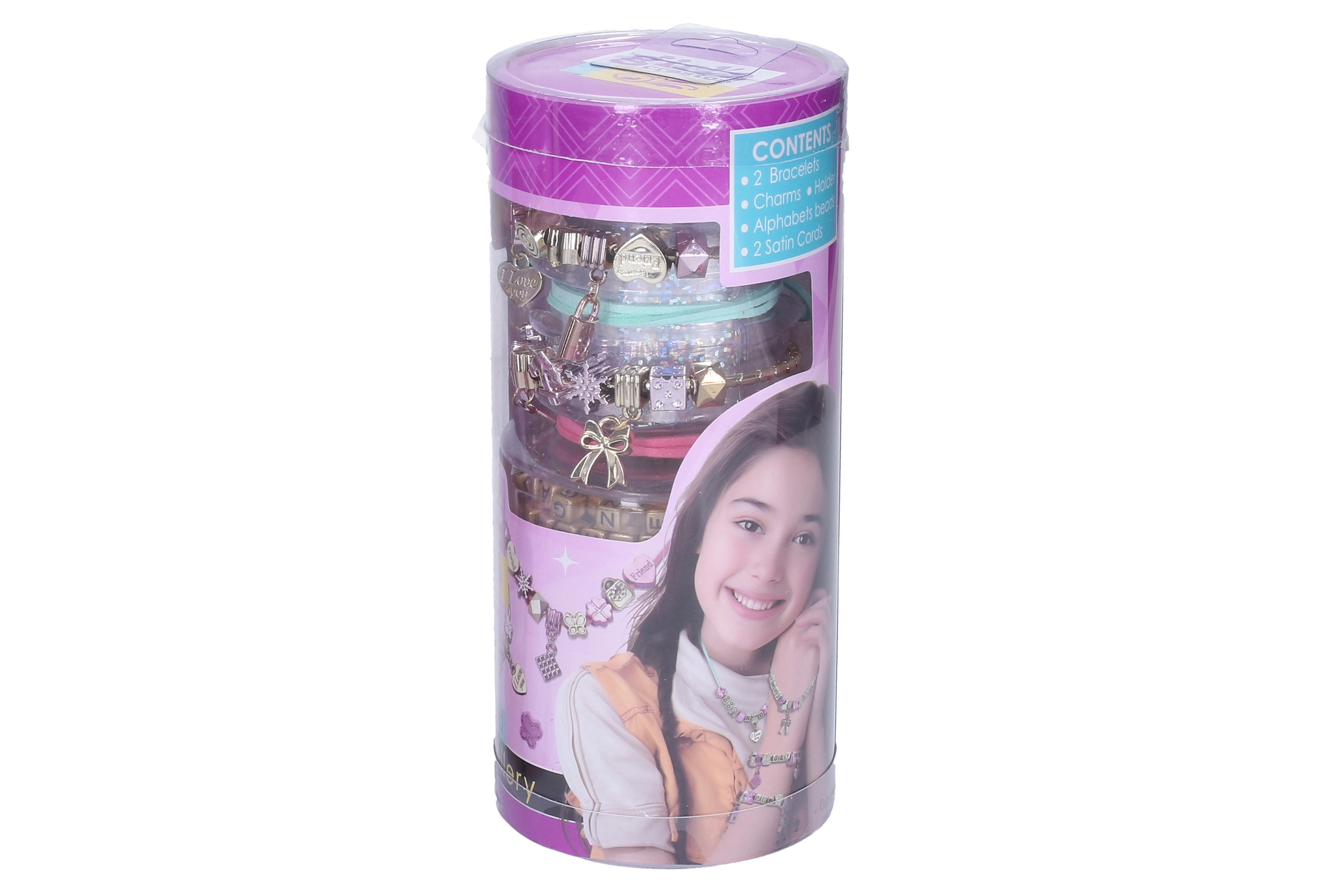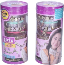 Descoperă un set creativ distractiv pentru realizarea bijuteriilor, cu care copiii își pot crea propriile brățări și coliere. Setul include pandantive în nuanță rose gold, mărgele cu litere, șnururi colorate și cercuri metalice pentru brățări pentru înșirare ușoară și mesaje personalizate.