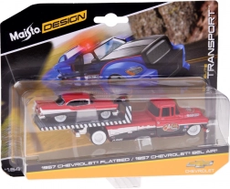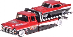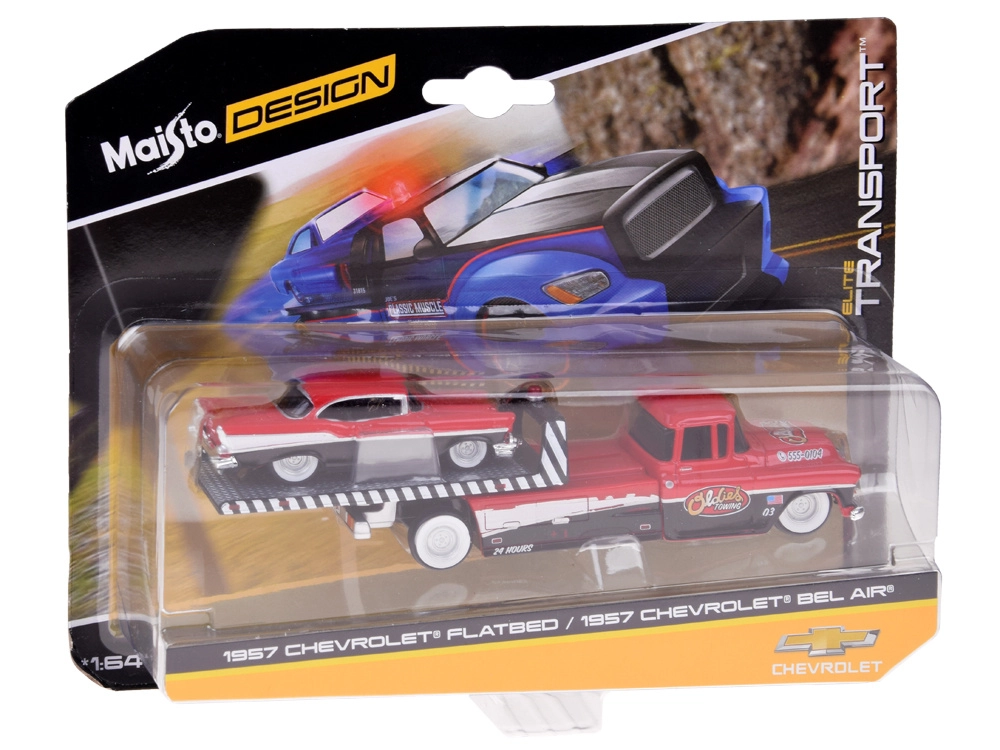 Modelele sunt fabricate cu accent pe calitate: caroserie metalică pentru rezistență și durabilitate, șasiuri din plastic pentru modelare fină și rulare lină a roților. Platforma camionului de remorcare permite transportul modelului Bel Air, astfel încât setul oferă scenarii realiste pentru joacă și fotografiere.