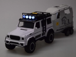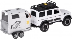 Acest set realizat cu atenție la detalii combină o mașină de teren robustă și o remorcă tip „boks” destinată transportului sigur al cailor. Copiii se vor bucura de detalii realiste precum suportul de plafon cu scară, ușile din față care se deschid și roțile mari de teren, gata pentru orice aventură în camera de joacă.