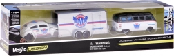 Descoperiți designul atemporal al automobilelor clasice, redat cu precizie de Maisto. Setul, în eleganta combinație alb‑argintiu, oferă caroserii metalice, șasiuri din plastic pentru greutate redusă și rulare lină pe diferite suprafețe datorită roților din cauciuc. Beetle încape confortabil pe remorca inclusă, astfel vă bucurați atât de transport autentic, cât și de o expunere spectaculoasă în colecție.