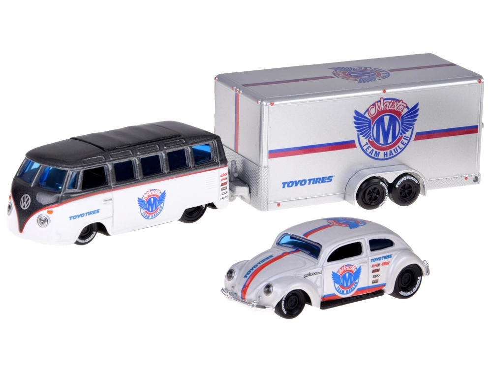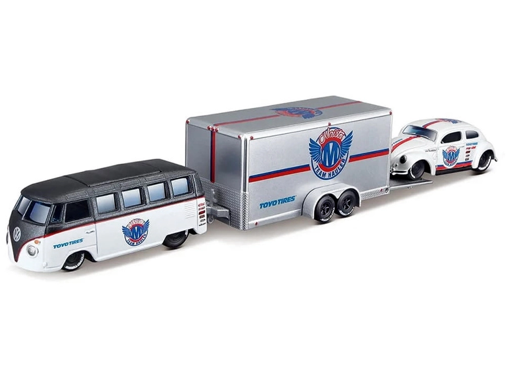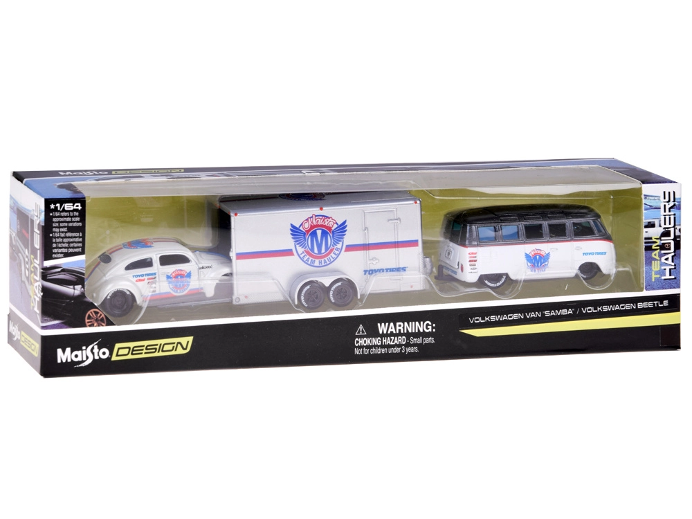 Volkswagen Van Samba este echipat cu cârlig de remorcare pentru cuplarea remorcii; cârligul poate fi demontat la nevoie, iar remorca poate fi decuplată fără a desfășura cârligul. Întregul set este ideal pentru pasionații de vehicule clasice, colecționarii scării 1:64 și copiii care iubesc jocul creativ.
