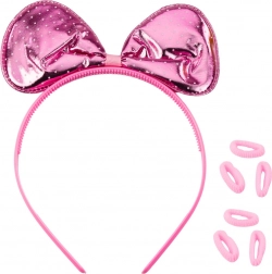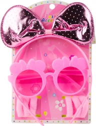 Setul roz drăgălaș de accesorii dezvoltă creativitatea și imaginația copiilor. Bentița confortabilă se adaptează perfect capului copiilor, ochelarii au o construcție ușoară și sigură, iar elasticele țin în siguranță atât codițele simple, cât și coafurile fanteziste.