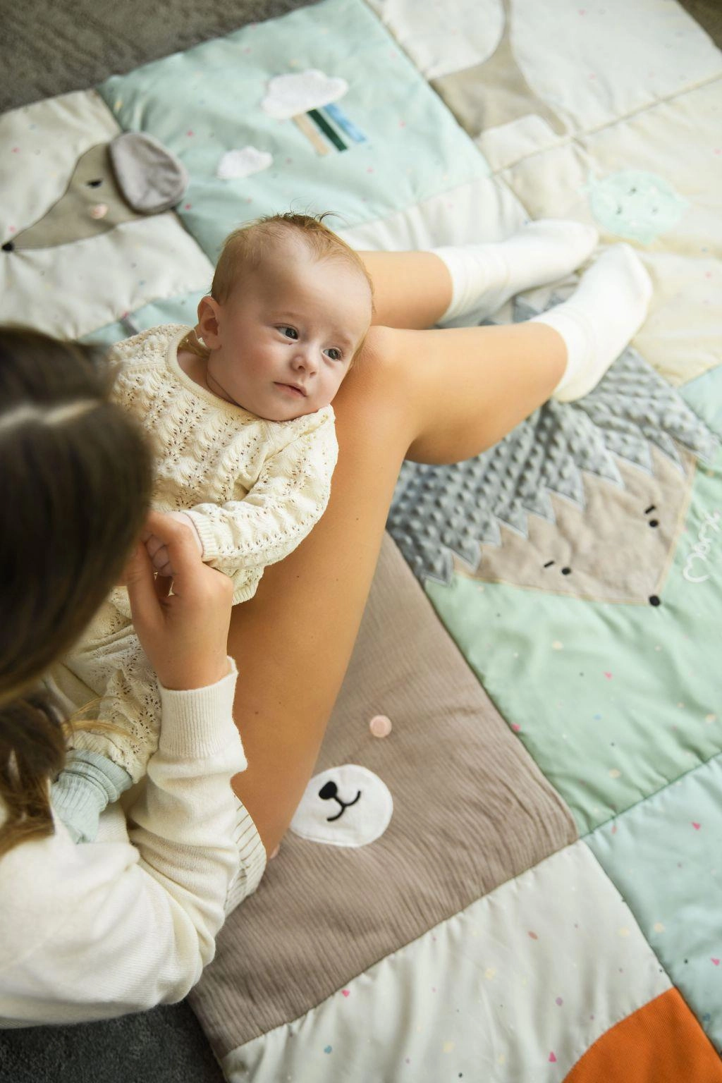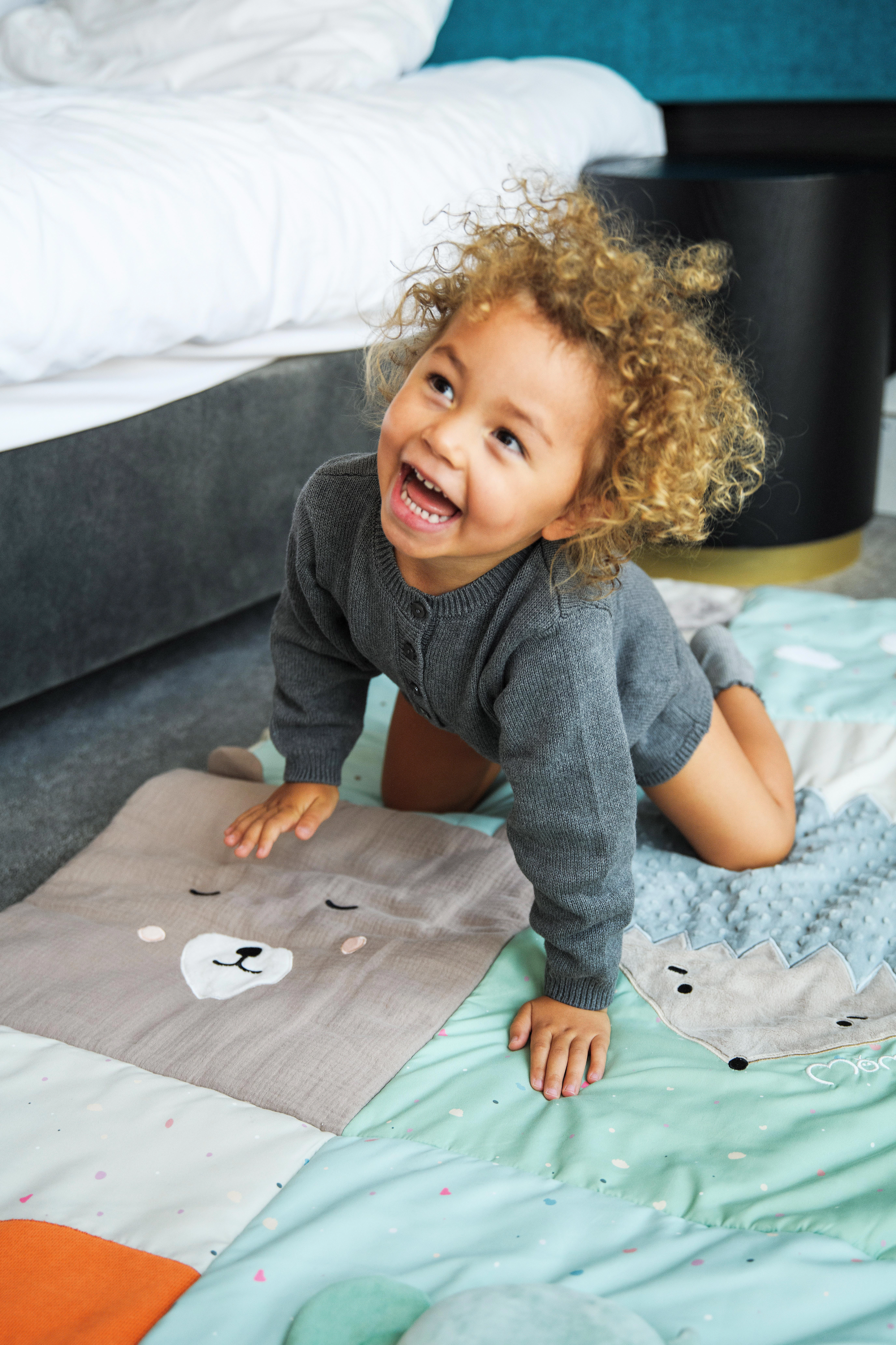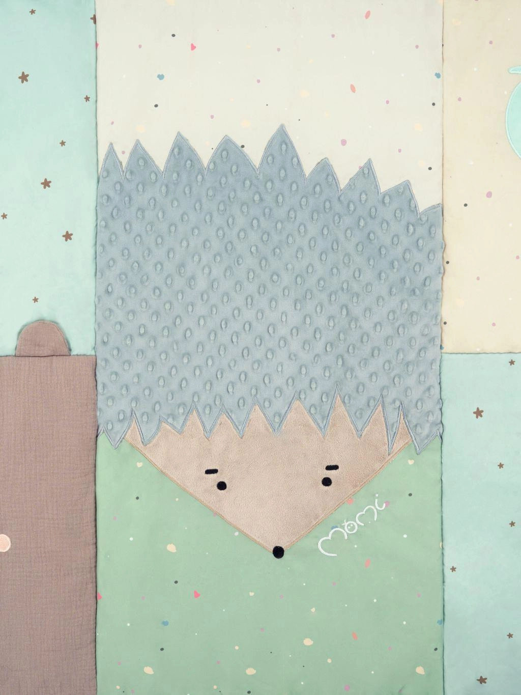Pătura de joacă MoMi VOLPI este concepută să crească odată cu copilul tău – de la primele momente petrecute pe burtică până la joaca independentă. Designul patchwork cu texturi variate (minky, pluș, muselină, boucle) oferă o bogată stimulare senzorială și un confort plăcut. Datorită dimensiunii mari, 120 × 160 cm, creezi o zonă sigură și moale pentru joacă, odihnă și explorare.