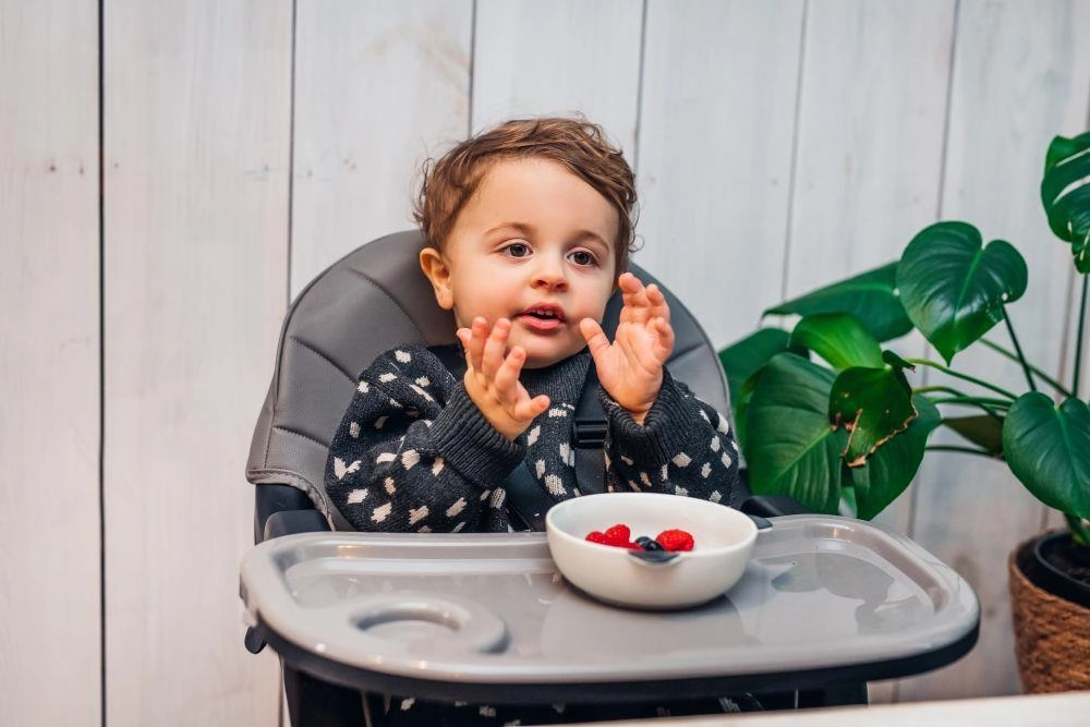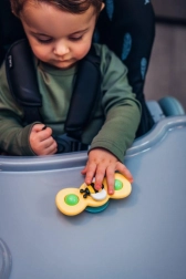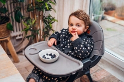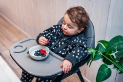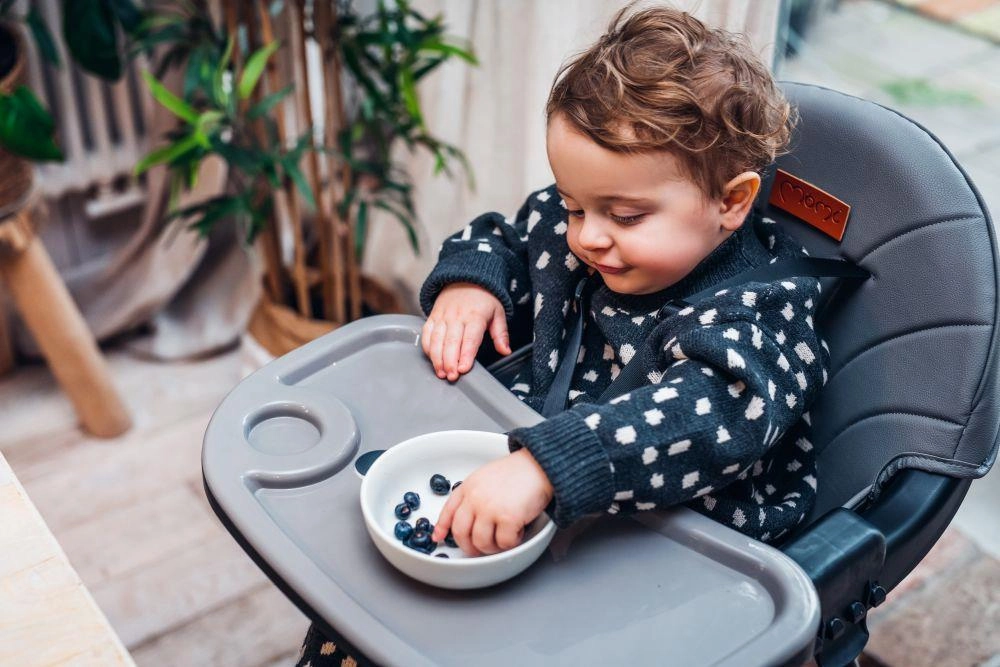 Un singur scaun pentru întreaga perioadă de diversificare până la vârsta preșcolară: cu tavă pentru primele mese, fără tavă la masa familiei și scăunel jos pentru joacă și creație.