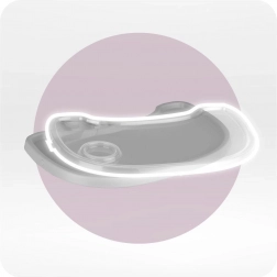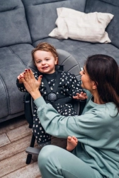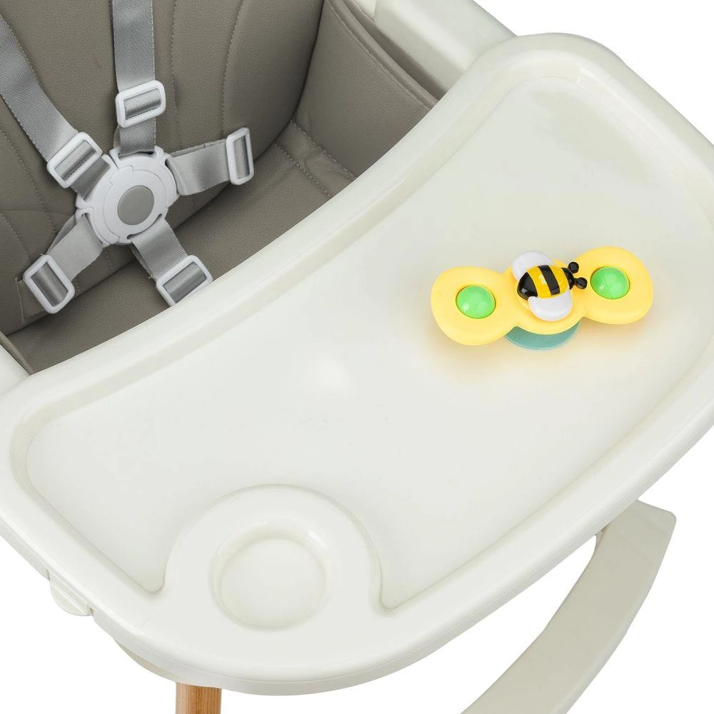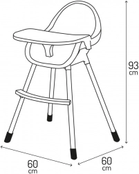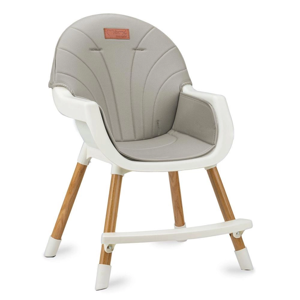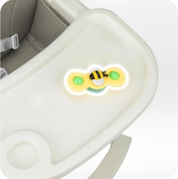 Detaliile practice fac utilizarea zilnică mai ușoară: eco-pielea se șterge rapid, partea superioară a tăvii se poate spăla în mașina de spălat vase, iar tava reglabilă se adaptează copilului. Construcția stabilă, cu suport pentru picioare și centuri de siguranță, asigură o ședere confortabilă și sigură.