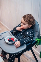 MoMi REKI este un scaun de masă pentru copii versatil, care se adaptează fiecărei etape de creștere. Datorită celor 3 moduri de utilizare, treci ușor de la hrănirea cu tavă la statul confortabil la masa familiei, iar mai târziu la un scăunel jos pentru joacă și activități creative. Designul minimalist și culorile atenuate se potrivesc în orice interior.