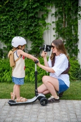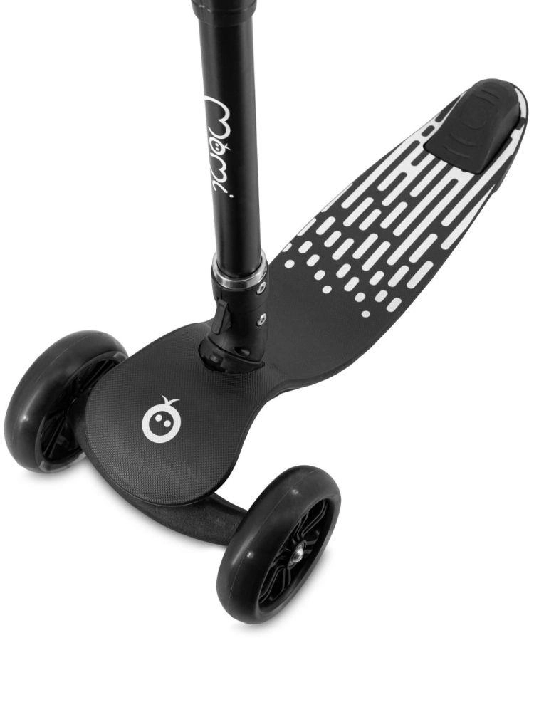 MoMi San este trotineta ideală pentru micii rideri de la aproximativ 3 ani. Cele trei roți asigură stabilitate excelentă, greutatea redusă de 2,7 kg ușurează manevrarea, iar frâna de picior oferă siguranță la oprire. Datorită roților cu LED-uri, plimbarea este nu doar sigură, ci și distractivă.