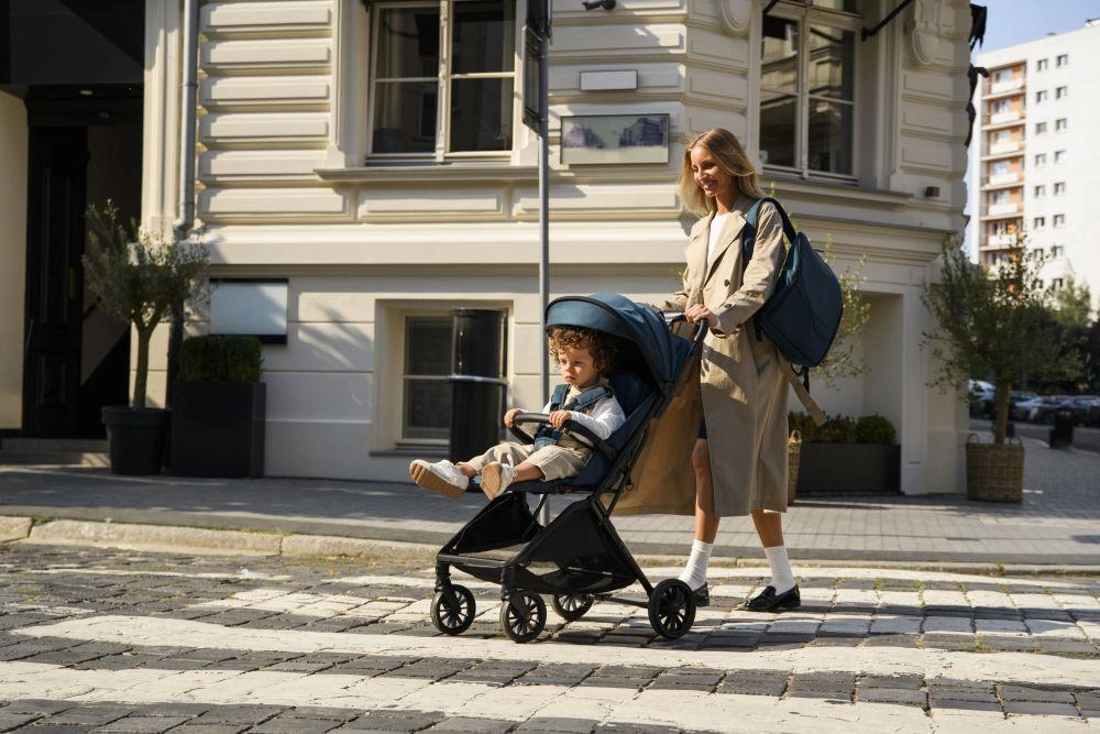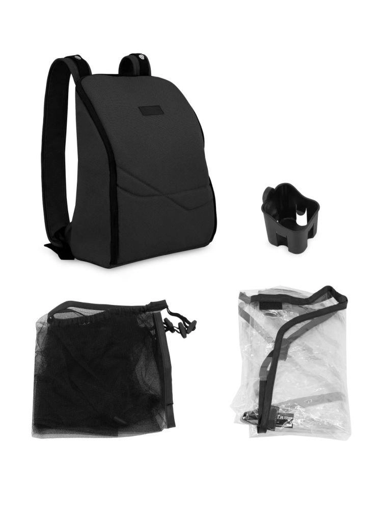 Pachetul include accesorii practice: rucsac, suport pentru băuturi, plasă împotriva insectelor și husă de ploaie. Coșul cu capacitate de 2 kg găzduiește tot ce este necesar pentru plimbare. Setul opțional de adaptoare permite cuplarea a două cărucioare în variantă tip tandem sau pentru gemeni – o soluție excelentă pentru o familie în creștere.