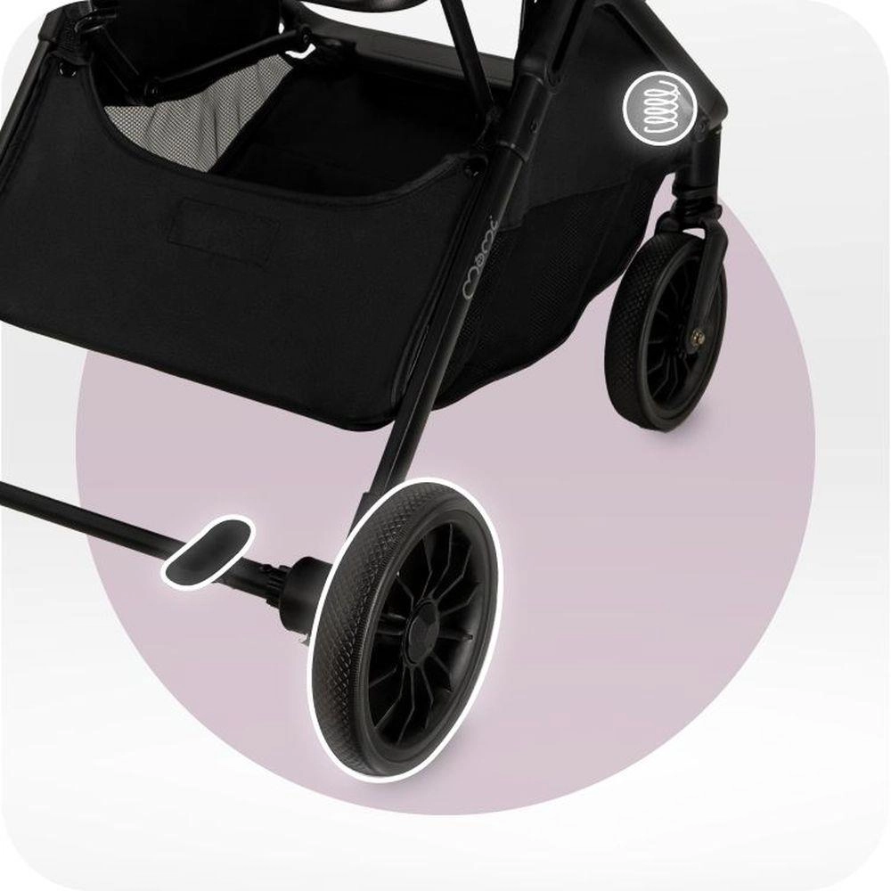 MoMi ANDREA este căruciorul ideal pentru oraș și excursii. Datorită sistemului de auto-pliare, îl pliați printr-un buton într-o dimensiune compactă, în care stă stabil vertical. Suspensia și roțile EVA fără întreținere (6,5" față, 7" spate) oferă o rulare lină și manevrare ușoară.