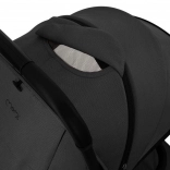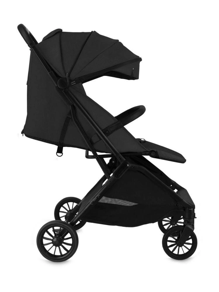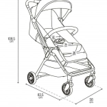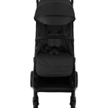 Capotina spațioasă cu fereastră pentru contact vizual cu copilul și o a doua fereastră de ventilație din plasă aduc confort în zilele călduroase. Scaunul cu spătar reglabil până la poziția culcat și suport pentru picioare în 4 trepte se adaptează nevoilor curente. Siguranța este asigurată de centurile în 5 puncte și bara frontală detașabilă.